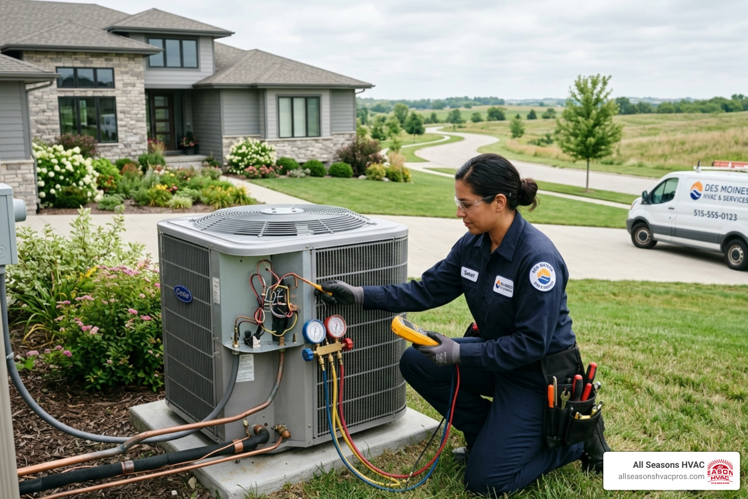 - Who to call: A licensed local HVAC company like All Seasons HVAC LLC serving the Greater Des Moines area