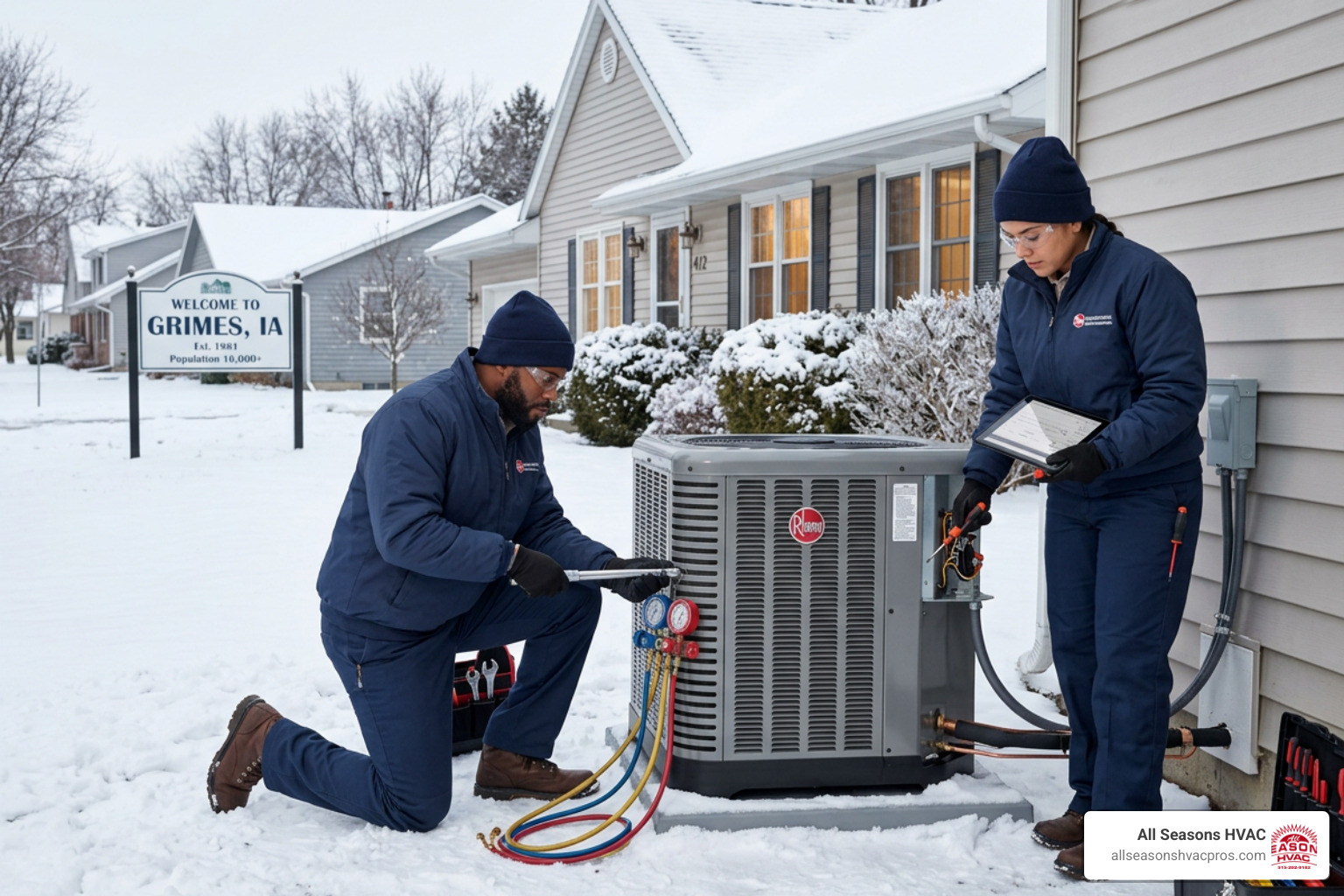 Grimes sits in central Iowa, where the weather doesn’t play nice. Summers are hot and humid. Winters are cold, snowy, and sometimes brutal. Your HVAC system takes a beating year-round, so getting the installation right — with a properly sized, correctly configured system — matters a lot.