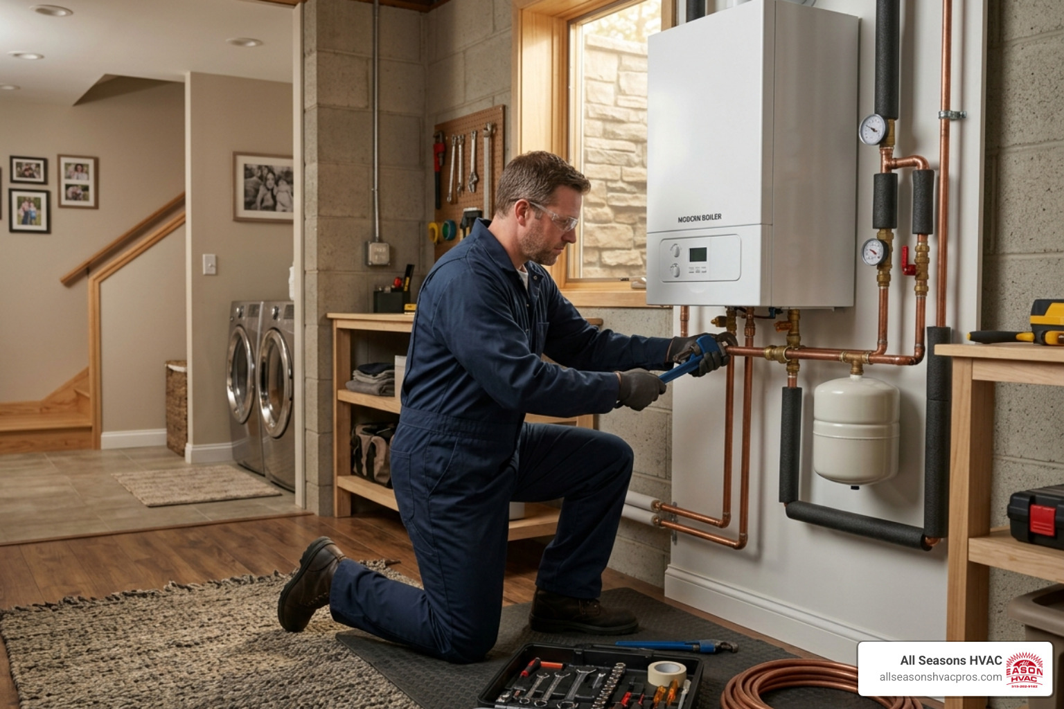 If a boiler is too big, it wastes energy by heating up too fast and then shutting down, which is hard on the heat exchanger. If it’s too small, it will run constantly and still fail to reach the target temperature on your thermostat. We use precise calculations to ensure your unit is the “Goldilocks” fit—just right for your home. You can learn more about this process in our article, New Boiler Installation in Altoona: A Steamy Guide to Staying Warm.